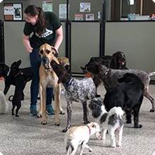 All dogs boarding in a Lodge suite are attended to throughout the day for feeding, cleaning and potty breaks. All Lodge suite dogs receive 3 potty letouts by an activity staff with our basic program. Potty letouts occur in the morning, afternoon and evening.